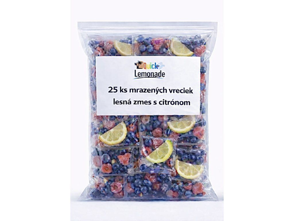 Balenie obsahuje 25 vreciek mrazeného ovocia po 65g (lesná zmes + citrón).