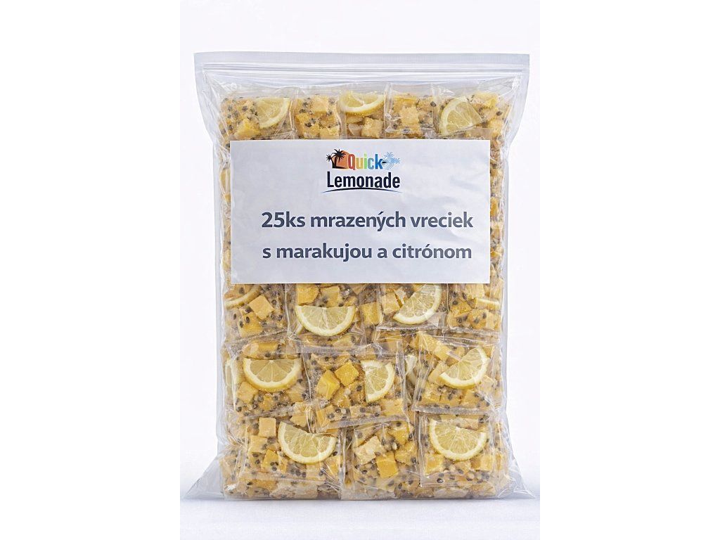 Hlbokozmrazená ovocná zmes marakuje a citróna nasáčkovaná po 65 gramov (25 kusov).